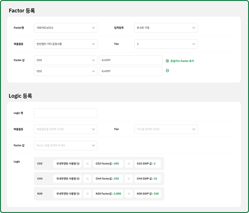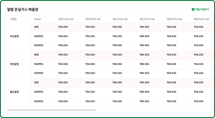 기업의 데이터를 활용해 온실가스 배출량을 계산합니다.