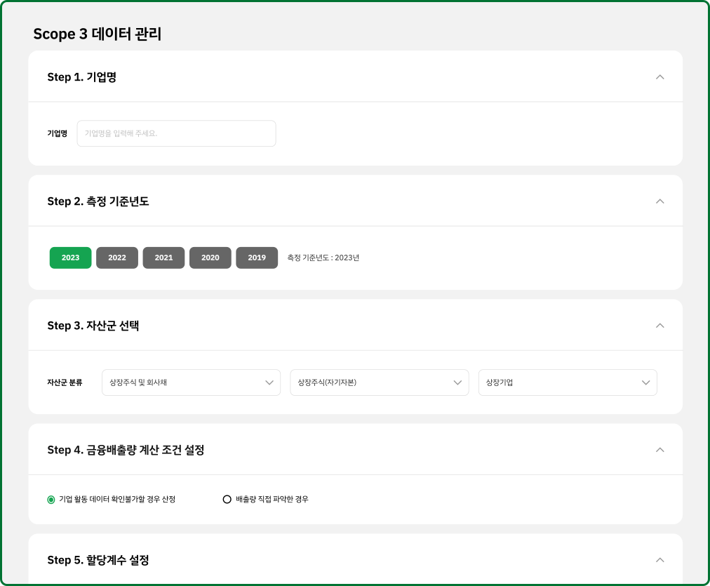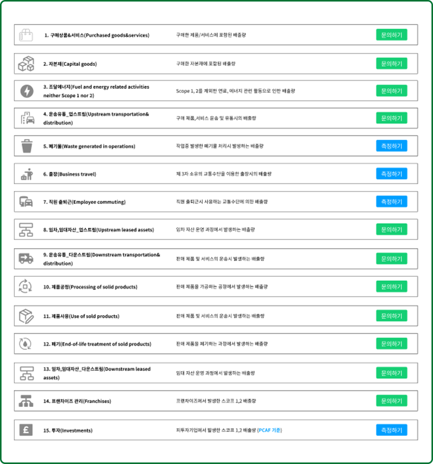 Scope3 15개 카테고리별 산정방법을 제공합니다.